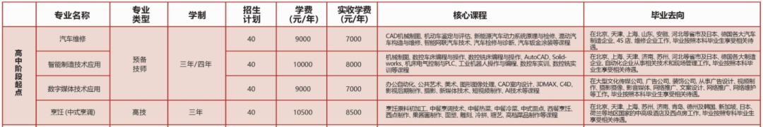 高中阶段起点班采用学制缩短的方式,发挥我院资源优势,按照“工学一体”“产教融合”等培养模式,直通预备技师层次(本科),培养更符合产业需求、素质更全面,可参与技术研发创新的实用型、综合型技术技能人才。
